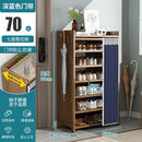 若时鞋柜门口入户柜防尘简易鞋架子家用多层靠墙楠竹鞋子收纳柜一体 【蔚蓝布帘全板密封】-七层70
