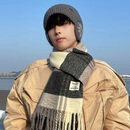 岚玘秋冬格子围巾男围脖护颈生日礼物长款冬季保暖冬季2024新款百搭 拼色格子围巾【黑灰色】