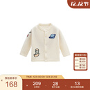 white wheat儿童秋季新款纯羊毛针织衫男小孩休闲上衣女童开衫毛衣 米白 90 cm