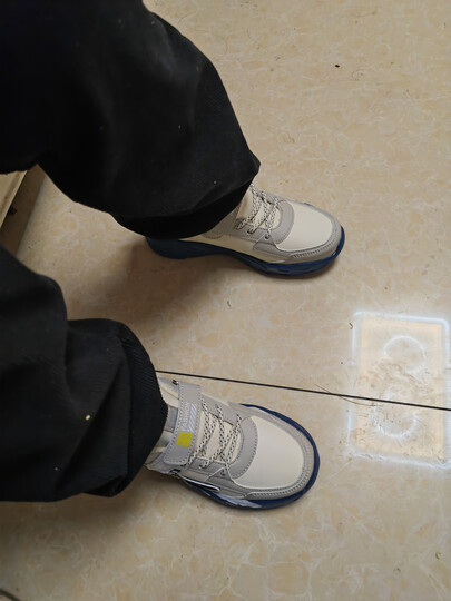 鸿星童品牌断码童鞋男童运动鞋皮面防水春秋季新款儿子女孩跑步鞋中大童 jjl-1876米蓝皮面 34