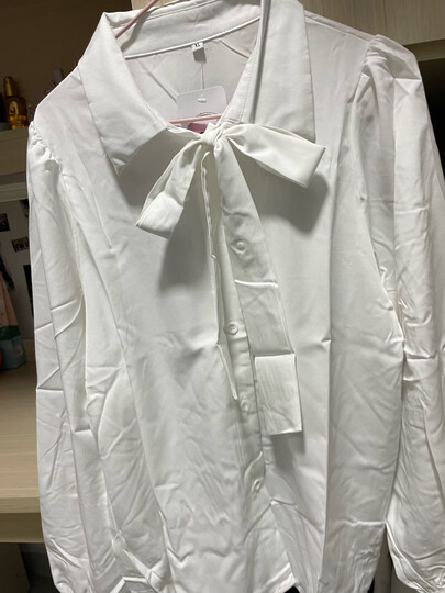 妙奕嘉打底衫长袖白衬衫女气质通勤白色职业衬衣职场面试正装内搭上衣 灯笼袖蝴蝶结衬衫【白色】 XL 【125-135斤】