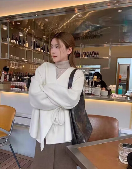 玛娇媚(Majiaomei)连衣裙女装套装2025年新款秋冬装搭配一整套百搭外套打底衫裙子女 杏色外套+杏色打底衫+咖色半身裙 M