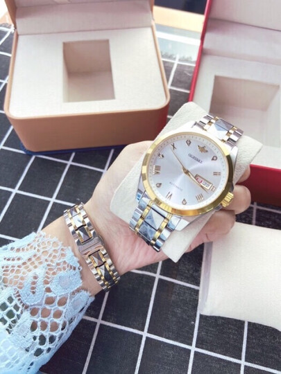 手表收到了,我试戴了一下手表戴着很高级大气上档次,手表颜色也很好看,手表款式非常大方时尚,戴着很轻巧方便