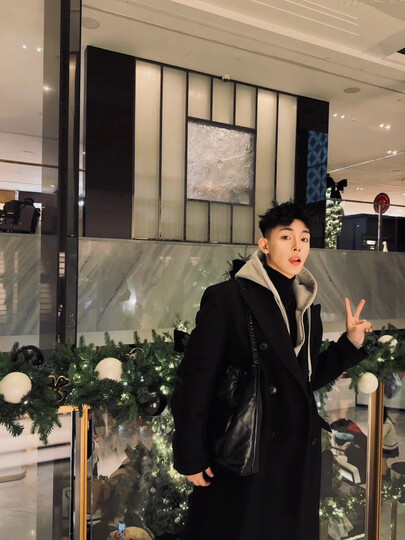 Shelley Jones假两件毛呢子大衣男中长款秋冬季新款可拆卸连帽宽松夹棉风衣外套 黑色 XL [建议140-165斤]