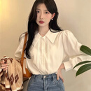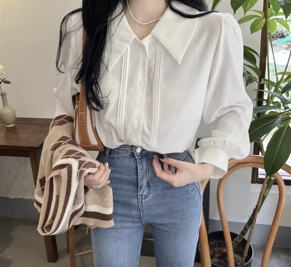 瑜尚臻品高级感白色衬衫女秋冬内搭设计感小众polo领长袖衬衣叠穿马甲上衣 白色 L (110-125斤)
