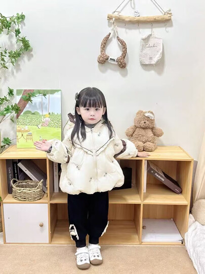 这款羽绒服设计的很不错,米色很高档的感觉,孩子穿上活动也不受限制,很方便,很舒服