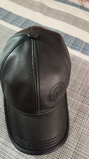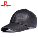 皮尔卡丹真皮帽子男士中老年人棒球帽秋冬天保暖鸭舌帽羊皮爸爸帽 黑色 可调节(56-60cm)
