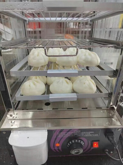 在这家买第二台蒸包柜。蒸速冻包子,烧麦,保温玉米,鸡蛋。镜面不锈钢的材质,四周的玻璃用的双层的钢化玻璃。放食物的层架有一个向下的倾斜角度,这样蒸汽的水就能顺着这个角度流下,不会滴在包子上打湿包子。蒸汽上来很快,蒸速冻包子,保温,展示,都非常实用