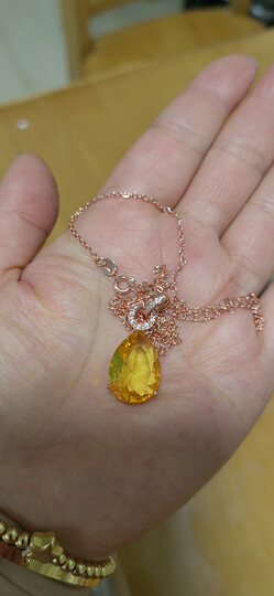 锦隍 JENVORL925纯银项链天然黄水晶吊坠女ins简约气质水滴形黄宝石锁骨链 黄水晶吊坠
