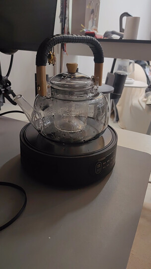 全度玻璃提梁壶家用小型电陶炉煮茶器烧水壶大容量保温玻璃茶壶 提梁壶(烟灰色)+电陶炉黑色款