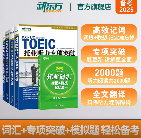 新东方托业考试 托业词汇乱序版+听力+阅读专项突破+全真模拟 共5册 新TOEIC单词书籍 (全2本)托业全真模拟1000题【听力+阅读】