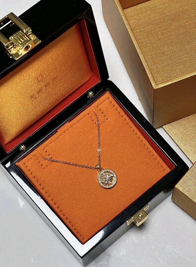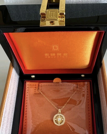 老铺黄金金古法手工足金项链 · 太阳图腾钻饰锁骨链 金重约8.39g