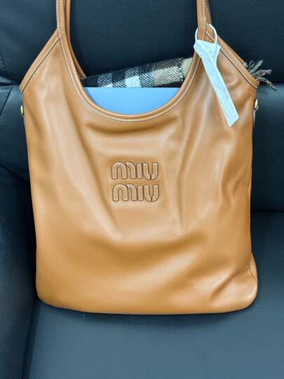 MiuMiu【礼物】缪缪女士IVY牛皮革大号托特包单肩包 干邑色