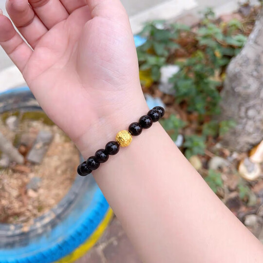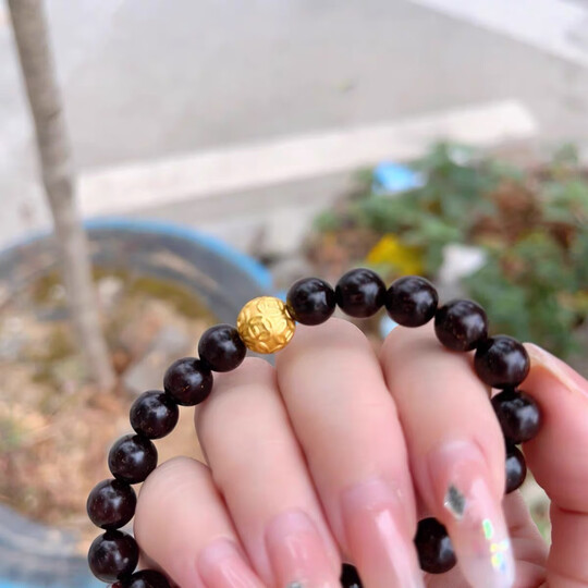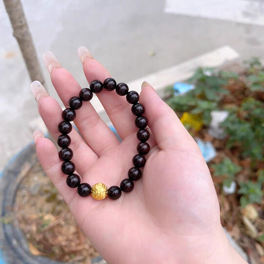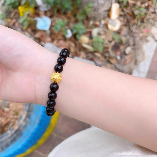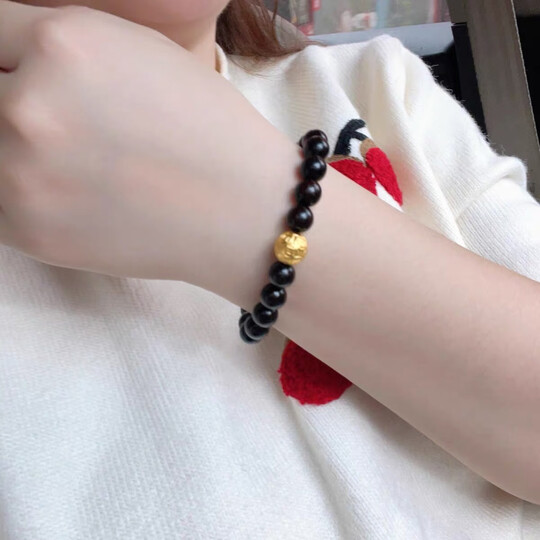 古苒印度小叶紫檀黄金转运珠手链男女款本命年足金串珠硬金手串礼物 0.8六字真言(满金星0.8x21颗+足