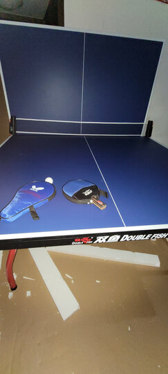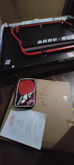 尺寸比预计的要大些,有点重,一个人是搬不动的,需要两人加个手推车。安装倒还简单,一个人就可以用随包装赠送的扳手拧螺丝搞定,主要就是把带轮的腿固定连上球桌。滚轮是塑料而非橡胶的,家用问题也不大。赠送的球拍看似还可以,家里有现成的也就不需要。但球网略掉价,全身是轻薄塑料的,完全没有专业形象。还好家里以前有也就不计较了,感觉就是还不如不加这个网。看说明书用二十来分钟,安装用一个半小时,擦灰用了一个多小时,而且很多方管里的灰擦不到,只能感慨这个工厂的仓库环境有点…九月份生产的,两个月时间居然像放了一两年以上!油漆等系细节还有待提升,处处打着世乒赛等赛事器材供应商的广告,然而细节做工应该在这个型号的产成品上体现不充分。试着立起一半个人练习,发现弹性很大根本不能发力,否则会弹飞很远,球落到外边,总体还可以,希望能改善细节。
