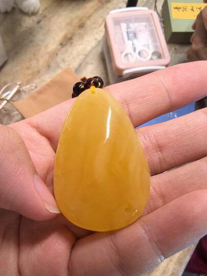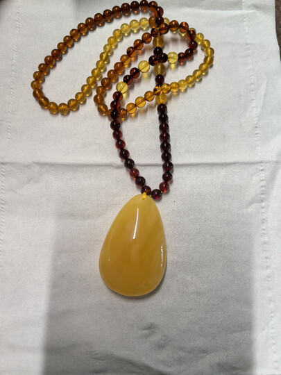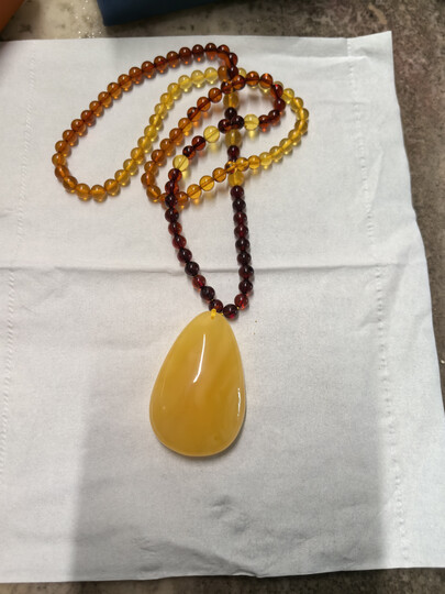 打开后惊喜不少,颜色自然美观。附赠2条项链,一条琥珀链,另一条绳子。整体大小适中,非常符合期望,一次满意的购物。