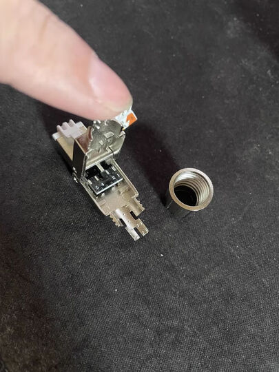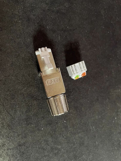 金属外壳的,屏蔽效果很好,质量不错,安装不用压线钳,非常简单方便,需要还会再来的