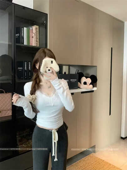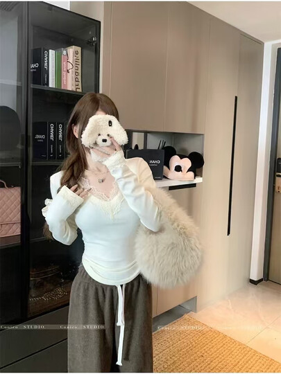 夏雨瑶白色蕾丝花边针织衫女2025春秋新款磨毛修身显瘦打底衫上衣内搭冬 白色 【心动crush/百搭*时尚/秋冬新款】 M 【建议90-105斤】