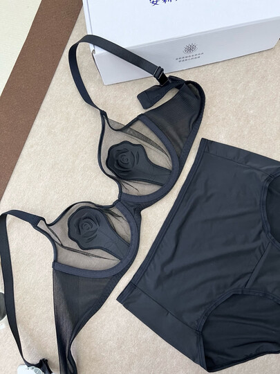 安莉芳玫瑰兔耳朵礼盒大胸显小女结婚本命年红色文胸套装礼物 神秘黑玫瑰套装MX1 80B -L