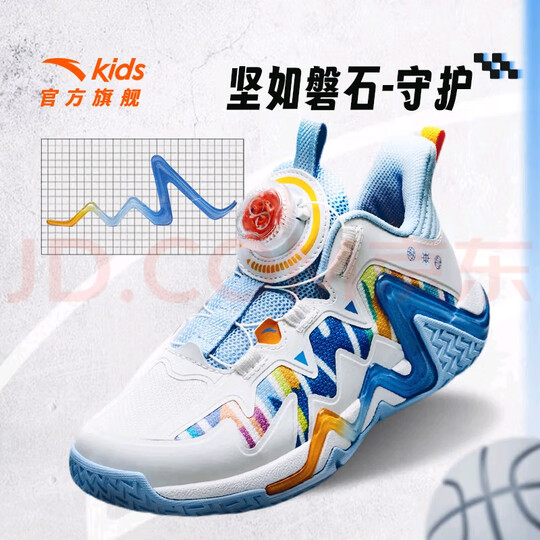安踏异形儿童篮球鞋男小童2025秋季新品旋钮扣防滑专业运动鞋子 【逆鳞】白/蓝/曦霞橙9930-5 30 脚长约18.5cm