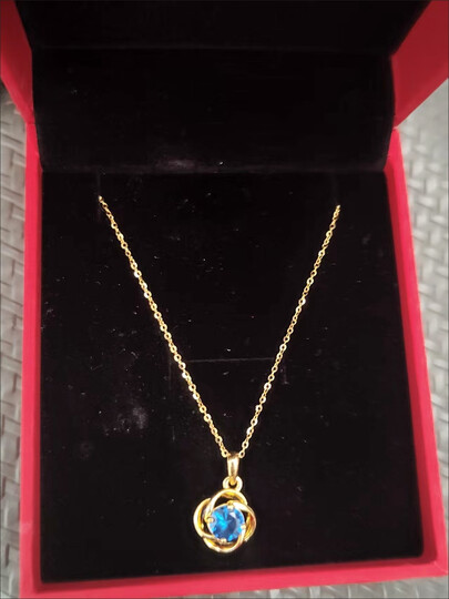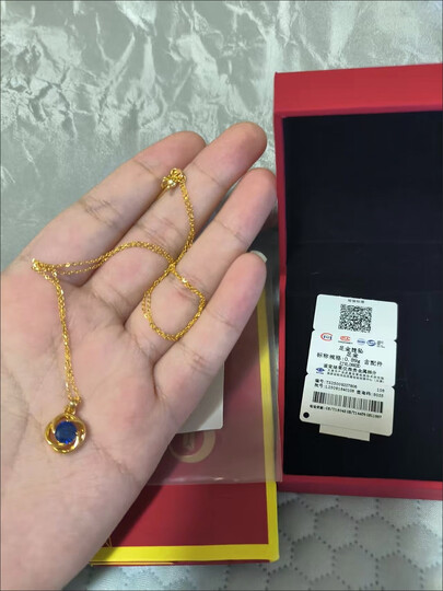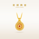 老铺黄金古法手工足金项链 · 玫瑰花窗(1号)宝石吊坠(金链款) 小号锁骨链款金重约7.8g