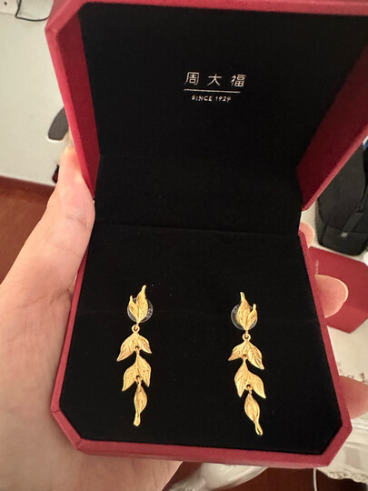 周大福金枝玉叶幸福叶婚嫁三金足金耳钉女黄金耳坠送生日礼物EOF1462 约5.20g计价(工费580)