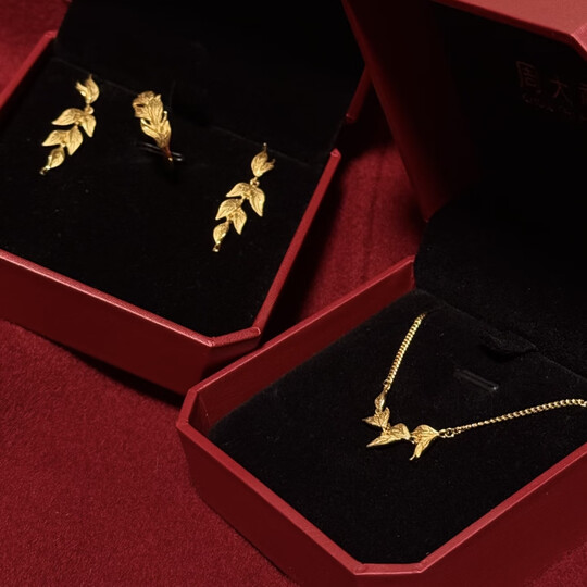 周大福金枝玉叶幸福叶婚嫁三金足金耳钉女黄金耳坠送生日礼物EOF1462 约5.20g计价(工费580)