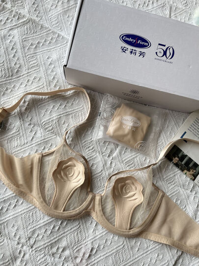 安莉芳玫瑰兔耳朵礼盒大胸显小女结婚本命年红色文胸套装礼物 性感香槟玫瑰套装LSB 80B -L