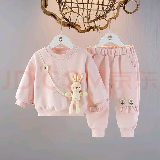 G.DUCKKIDS小黄鸭女宝宝秋装女童套装一岁婴儿衣服小女孩春秋休闲卫衣两件套 粉红色l两件套 110 尺码4~5岁【100-110cm】