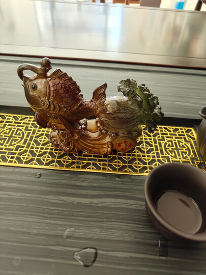 精品茶宠摆件白菜茶桌摆设茶盘台茶具配件变色茶玩可养 变色百财锦鲤【玉色】