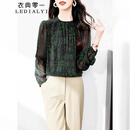 衣典零一(LEDIALYI)真丝衬衫女2025春秋季新款高级感洋气时尚通勤桑蚕丝衬衣长袖上衣 墨绿绮梦 L (建议90-115斤)