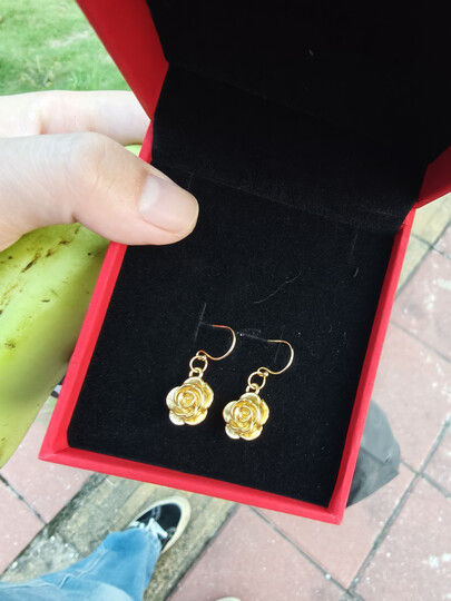 中国黄金(CHINA GOLD)玫瑰花黄金耳钉女足金花朵弯钩耳坠耳饰中秋节礼物送妈妈女友老婆 今/次日达*玫瑰耳坠+S925银耳钩 约0.6g