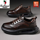 西域骆驼男鞋2025秋冬头层牛皮时尚休闲皮鞋气垫防滑厚底增高运动男士鞋子 深棕色-头层牛皮 单里 40