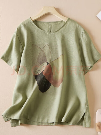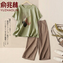 俞兆林妈妈夏装大码棉麻t恤套装洋气亚麻短袖遮肚两件套裤子母亲节礼物 搭配B 均码 大码2XL(建议140-160斤)
