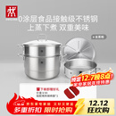双立人(ZWILLING)不锈钢汤锅蒸煮锅蒸屉蒸煮两用锅蒸鱼锅蒸馒头套装燃气电磁炉通用 【含蒸格】汤锅+2个蒸笼 28cm