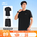 鸿星尔克运动套装男夏季冰感速干T恤短袖短裤爸爸跑步两件套父亲节礼物 正黑 XL
