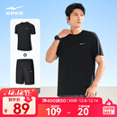 鸿星尔克运动套装男夏季冰感速干T恤短袖短裤爸爸跑步两件套父亲节礼物 正黑 2XL