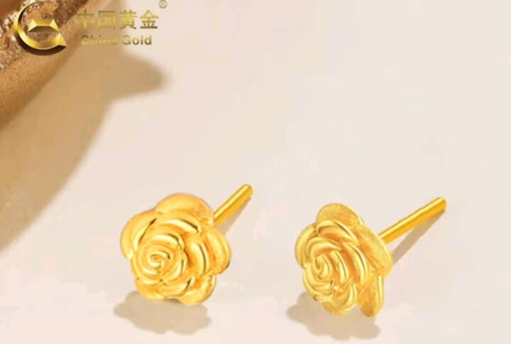 中国黄金(CHINA GOLD)18K金玫瑰花耳钉女款花朵直针款耳饰品圣诞节生日礼物送女友爱人 【今/次日达】18K玫瑰花耳钉