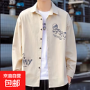 衬衫男长袖春秋季2025新款外套休闲宽松港风设计印花上衣服男衬衣 836卡其 L 【建议 100-120斤】