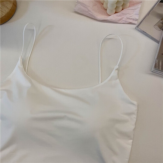 乐卡利白色小吊带抹胸背心女带胸垫辣妹内搭穿搭运动百搭纯欲无袖打底女 一体胸垫冰丝抹胸吊带 80-120斤
