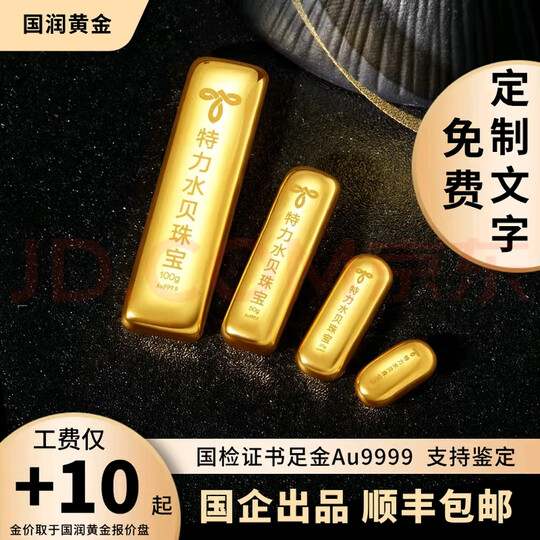 特力水贝珠宝足金黄金投资金条足金9999投资储值10克20克50克100克金条 浇铸金条10g 赠国检足金9999证书-假一赔十