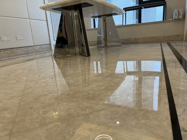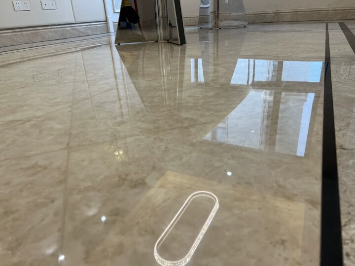 抛光剂使用后现在地板焕然一新,还是和新贴的一样亮,所有边边角角都是亮的,使用前后对比非常明显,效果真的很满意