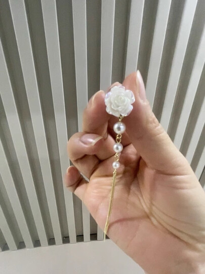 铂呐苓耳环女山茶少女超仙温柔森系珍珠精致法式流苏耳饰送女友节日礼物 山茶少女耳环一对儿