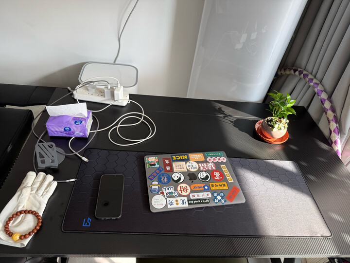 这款电竞桌彻底提升了我的游戏体验!碳纤维桌面结实耐刮,RGB灯效炫酷拉满氛围。精心设计的理线仓让所有线材隐藏无踪,桌面瞬间整洁。可调节高度功能,坐站交替办公游戏都舒适。边角圆润防撞,细节满分,是颜值与实力并存的战斗平台!