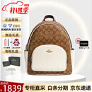 蔻驰(COACH)背包 CHarlie30 男女款经典老花时尚百搭书包双肩包节日送礼 白色配棕色5671-IMDJ8