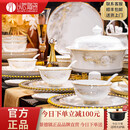 以辰景德镇家用新款碗碟套装中式高颜值陶瓷骨瓷餐具套装碗盘乔迁新居 大好江山大汤碗配置 66件套