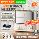 苏泊尔(SUPOR)电蒸锅炖蒸煮一体3层 18升大容量电蒸笼家用3-4个人蒸汽锅304不锈钢蒸笼多功能锅电煮锅 18L 全钢蒸笼+40S出蒸汽