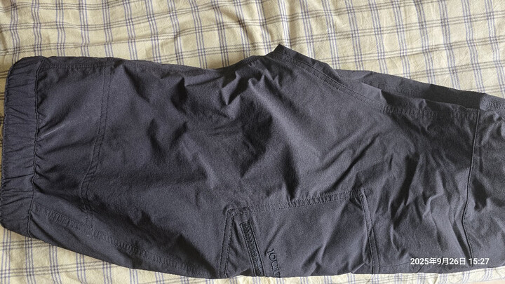 修身款,裆部大腿部位稍紧,稍宽一些会更好,面料微弹,防泼水,面料象软壳但稍薄,夏天不能穿,闷,春秋可以,冬天太瘦穿不了,像是东南亚板,没有考虑冬天穿着,后面右侧有口袋,左侧没有。