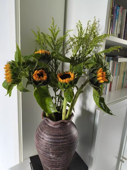 怀音复古怀旧老式粗陶罐花瓶干花多肉花盆水培植物新中式禅意摆件 A20落地 底部无孔(插花)