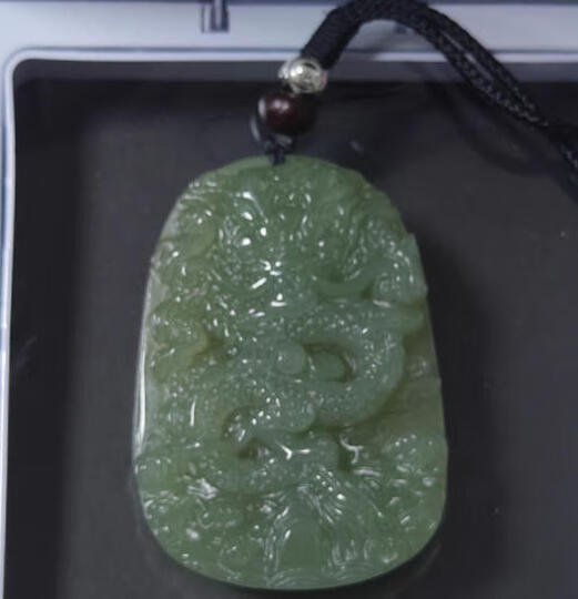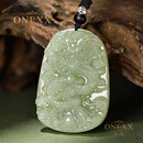 汐唯轻奢和田玉青玉生肖龙牌吊坠男士玉石玉佩平安符玉牌项链七夕礼物 【龙牌吊坠尺寸约53*37MM】